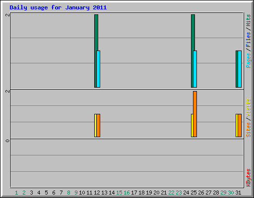 | Day | Hits | Files | Pages | Visits | Sites | KBytes | ||||||