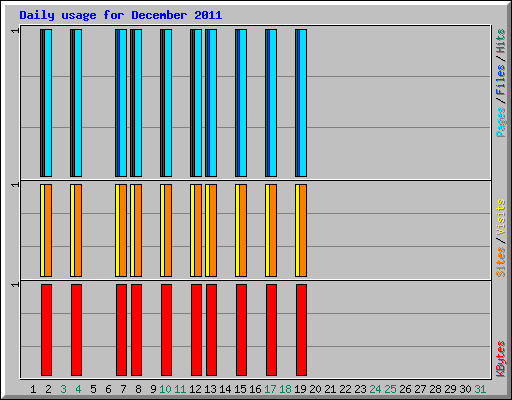 | Day | Hits | Files | Pages | Visits | Sites | KBytes | ||||||
