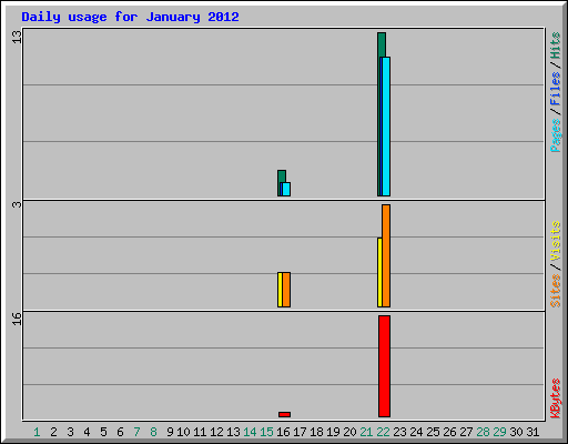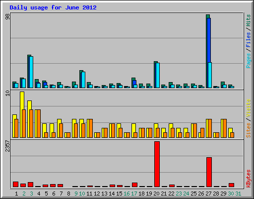 | Day | Hits | Files | Pages | Visits | Sites | KBytes | ||||||