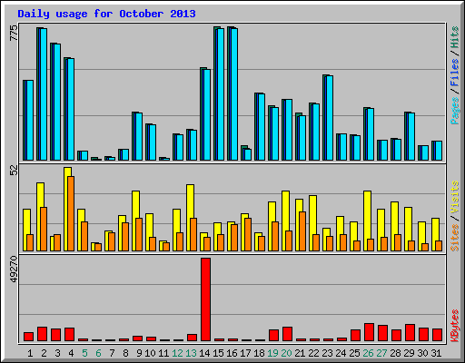 | Day | Hits | Files | Pages | Visits | Sites | KBytes | ||||||