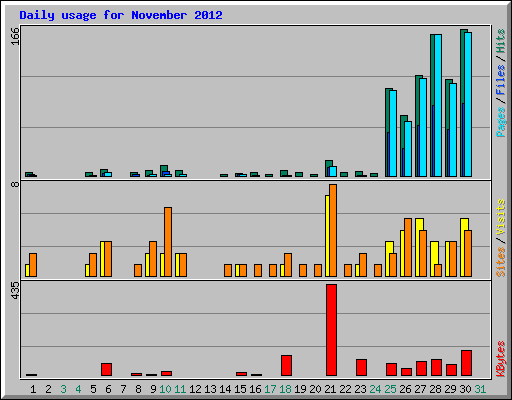 | Day | Hits | Files | Pages | Visits | Sites | KBytes | ||||||